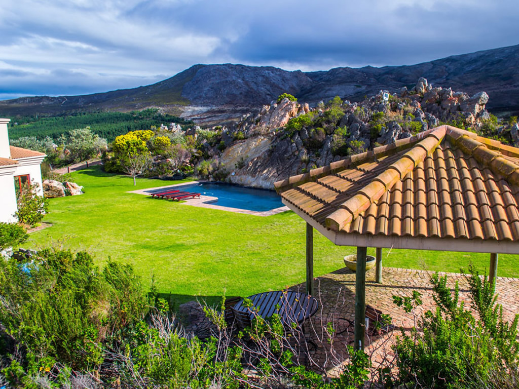 5 Tuscan-style self-catering luxury mountainside Villas, each with spectacular views across the valley down to Walker Bay in the distance and the Kogelberg Nature Reserve.